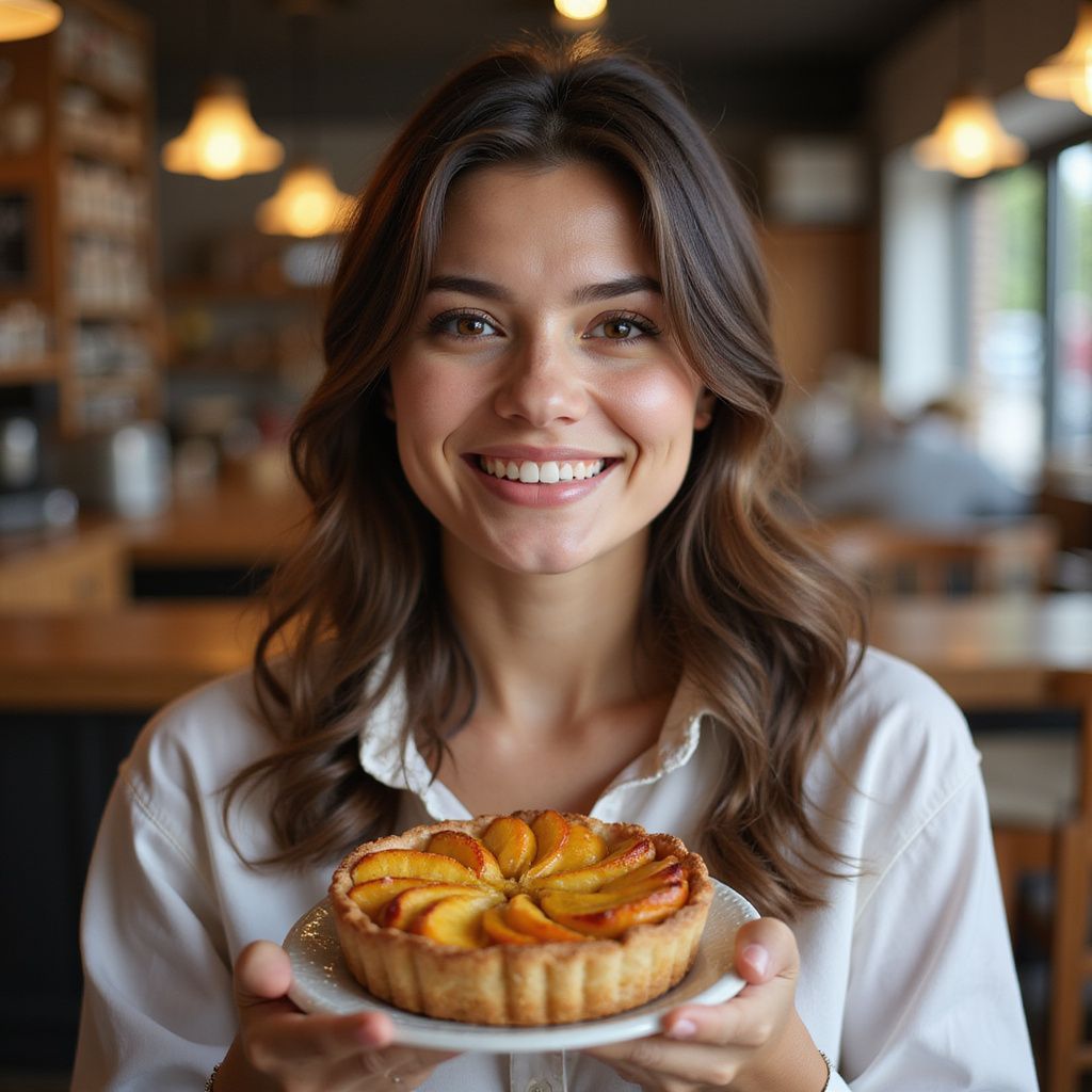 Our peach tart blends sweet, ripe peaches with a crisp, tender crust, praised for its balanced flavors.
